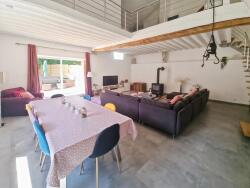 - À l'étage, une grande pièce utilisée comme chambre avec salle d'eau et WC,