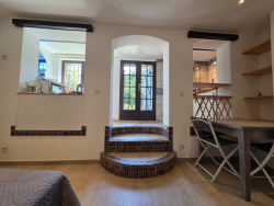 À seulement 15 minutes à pied du port, au calme d'une résidence avec piscine, découvrez une maison à l'âme singulière, ayant appartenu à un artiste. Mitoyenne, en copropriété horizontale, cette propriété entièrement rénovée avec goût et matériaux haut de gamme offre une expérience de vie rare sur le marché. Organisée sur trois niveaux, elle se compose : o Au rez-de-jardin, d'un spacieux studio indépendant de 23 m2, chic et sobre, parfait pour accueillir ou louer en saison. o Au niveau principal, une terrasse discrète précède une cuisine exceptionnelle, pensée jusque dans les moindres détails, alliant praticité et touches artistiques (crédence en mosaïque, pierre et bois en harmonie). Le salon s'ouvre sur une terrasse plein est, offrant chaque matin un lever de soleil sur les reliefs de l'Alta Rocca. o À l'étage intermédiaire, une grande chambre de 16 m2 prolongée par une terrasse arborée de jasmin, une salle de bain élégante et un WC indépendant. L'escalier, véritable pièce artistique, relie les niveaux dans une continuité esthétique et créative. Partout, des finitions originales et subtiles font de cette maison un lieu inspirant, intime et unique. Un bien sans travaux, à l'identité forte, réservé à ceux qui recherchent plus qu'un simple lieu de vie. Contactez Anthony Agence Mariani Propriano pour une visite privée. Les informations sur les risques auxquels ce bien est exposé sont disponibles sur le site Géorisques : www.georisques.gouv.fr.
