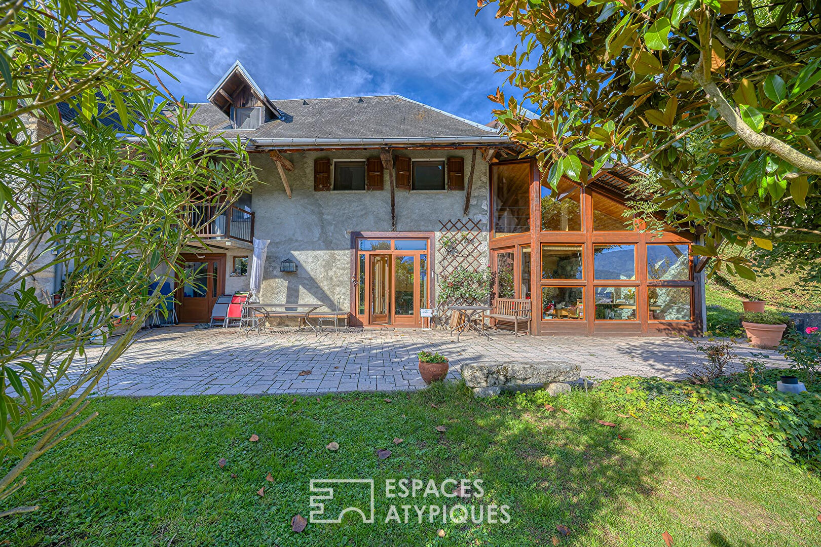 Située au coeur du village prisé de Brison-Saint-Innocent, cette bâtisse de la fin du XVIIIe siècle est une véritable pépite architecturale. Entièrement rénovée, elle développe environ 199m² habitables et marie avec élégance l'authenticité de la pierre ainsi que la chaleur du bois. Dès l'entrée, la vaste pièce à vivre impose son caractère : ses poutres apparentes, son poêle à granulés cosy et sa cuisine semi-ouverte sont ainsi sublimés par une ravissante mangeoire d'époque. Le rez-de-chaussée accueille également une terrasse tout en longueur avec spa et coin repas, prolongée par une ancienne grange pouvant se transformer en atelier ou lieu de stockage. L'espace nuit s'articule sur deux étages. Le premier niveau propose deux chambres, dont une avec un balcon offrant une vue dégagée sur la chaîne de l'Épine. Un bureau et une salle de bain à l'ambiance boisée viennent s'ajouter à cet espace. Le second niveau s'ouvre sur une vaste pièce sous charpente, agrémentée d'une bibliothèque sur mesure aux dimensions impressionnantes. L'endroit parfait pour travailler ou se relaxer. Une volée de marches plus haut, un couloir dessert une salle d'eau et deux chambres climatisées avec clin d'oeil sur le lac du Bourget. Point important : ce dernier niveau peut être détaché et devenir un appartement indépendant. Deux places de stationnement, un garage ainsi qu'une cave à vin complètent les généreuses prestations de ce bien d'exception où l'histoire rencontre le confort moderne, à deux pas du centre-ville et à 10 minutes en voiture de l'A41. Toit refait à neuf en mars 2024. Montant moyen estimé des dépenses annuelles d'énergie pour un usage standard, établi à partir des prix de l'énergie des années 2021, 2022 et 2023 : entre 1.590 euros et 2.220 euros. Les informations sur les risques auxquels ce bien est exposé sont disponibles sur le site Géorisques : www.georisques.gouv.fr. Contact : Antoine - 07 81 94 83 02 Antoine de Longevialle (EI) Agent Commercial - Numéro RSAC : 988 747 465 - Chambéry.