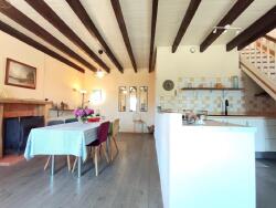La maison principale s'ouvre au rez-de-chaussée sur une cuisine lumineuse ouverte sur la salle à manger, idéale pour les moments de partage. Un salon chaleureux, posé sur un sol en travertin, vous enveloppe d'une atmosphère douce et authentique. Une pièce dédiée à la musique ou à la création vous laisse libre d'y exprimer vos passions. À ce niveau, vous trouverez également une salle d'eau avec WC.