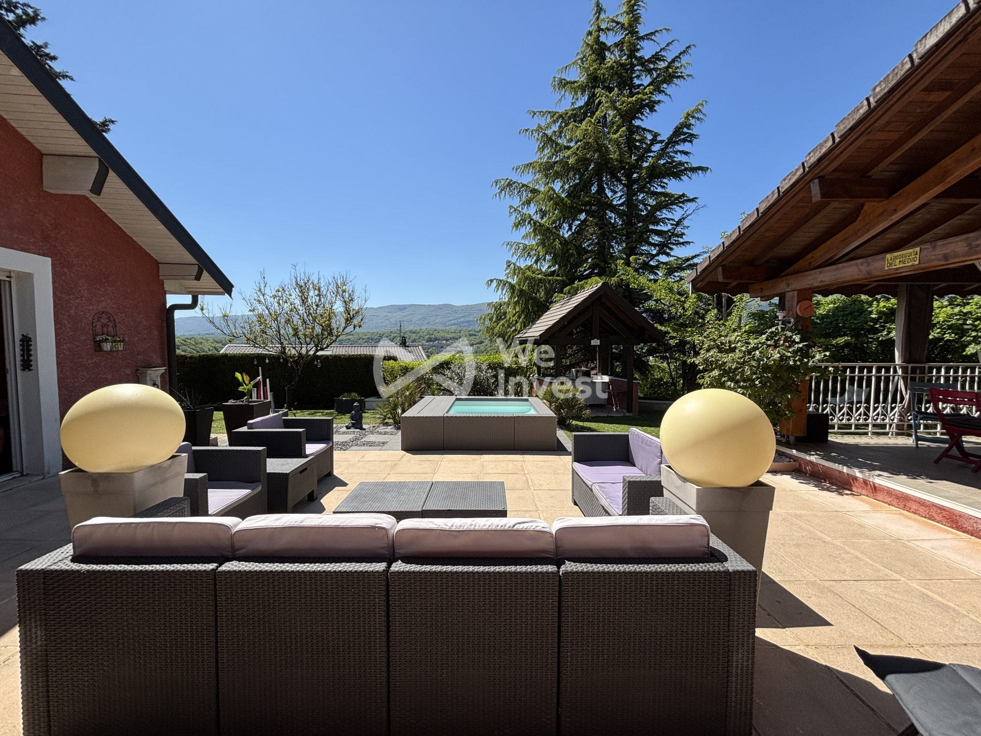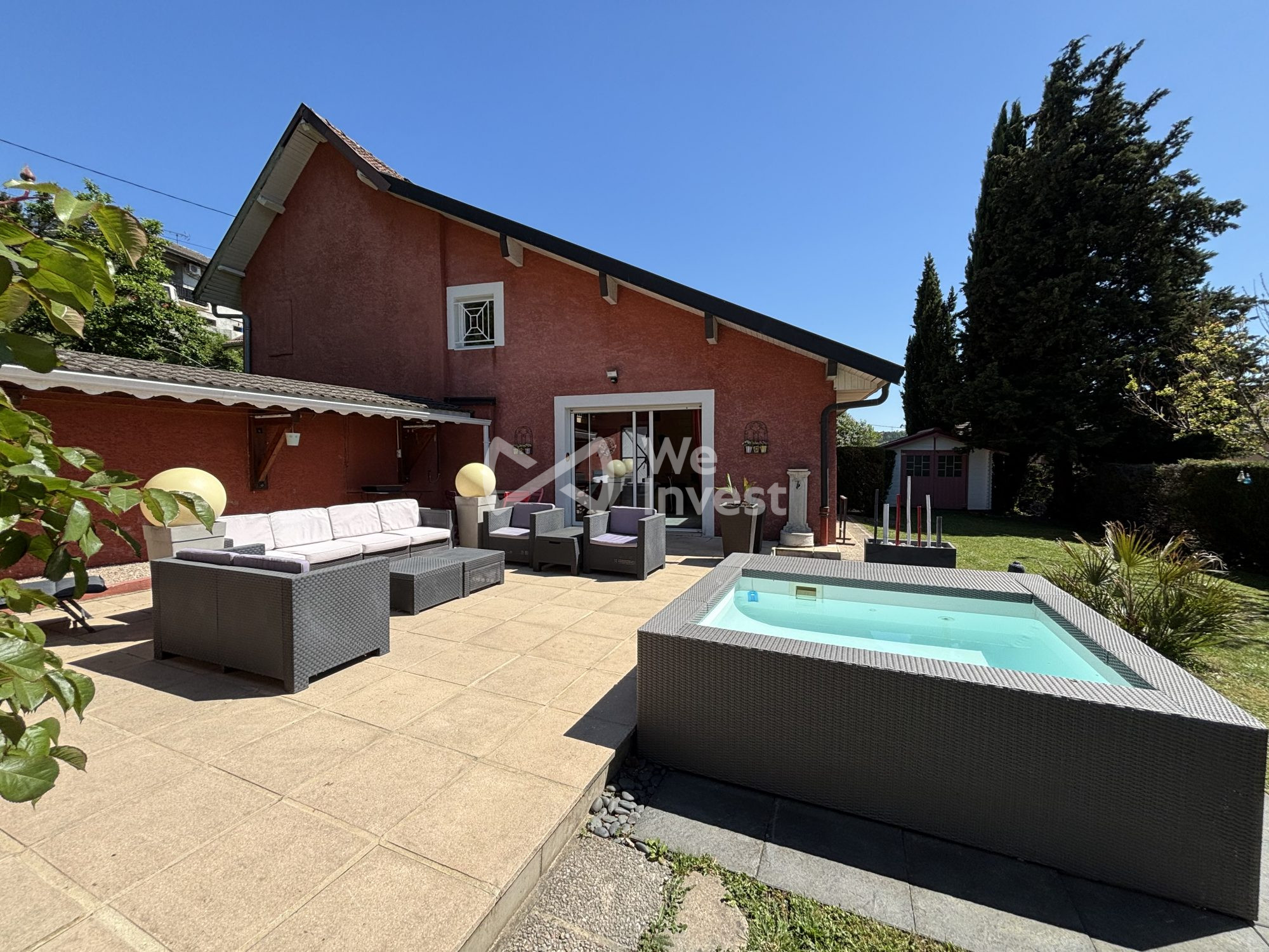 Cette maison avec jardin bénéficie d'un superbe extérieur paysager, idéal pour une famille ou pour les amoureux de la nature, tout en restant proche de la frontière suisse et de Genève.