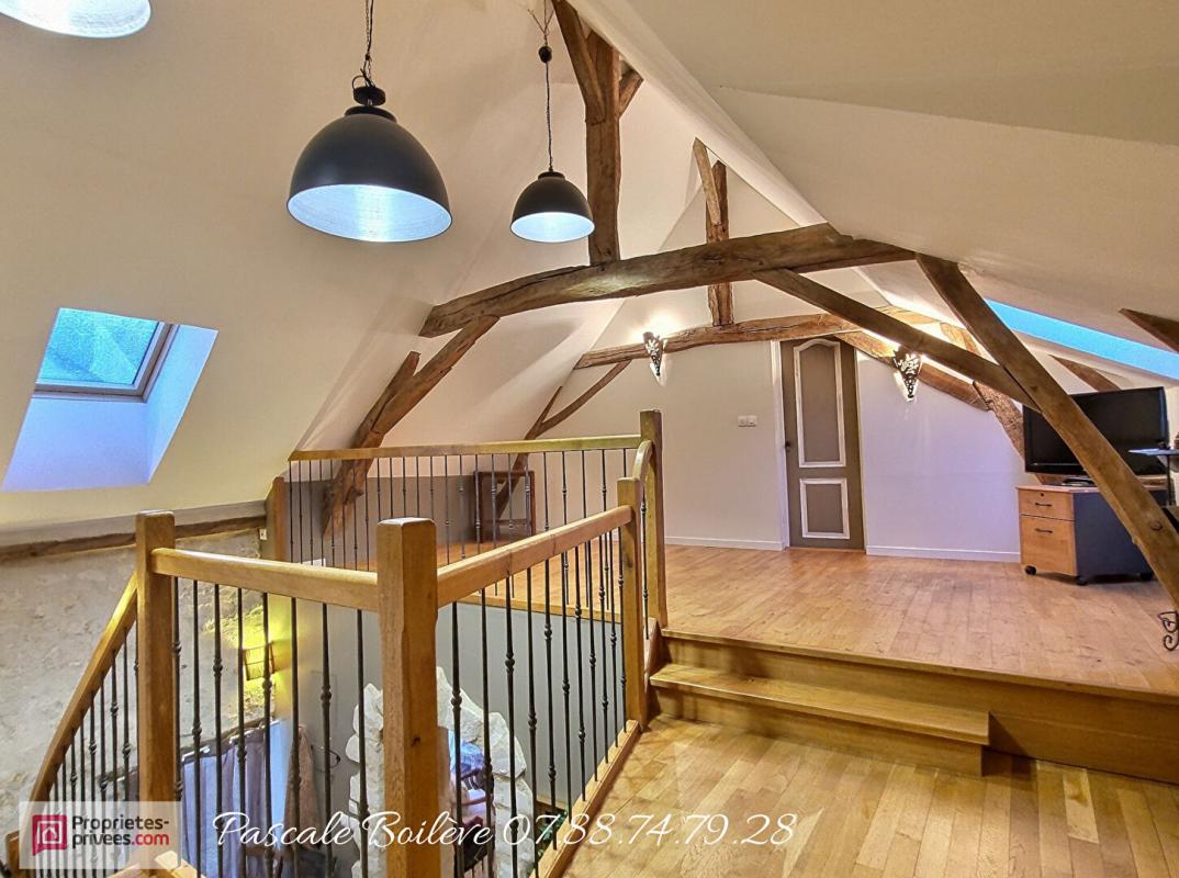 A l'étage, deux chambres en enfilade, un bureau et un cabinet de toilettes avec WC complètent l'aménagement.