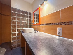 Une salle d'eau avec toilettes