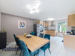 D'une surface habitable de 150 m², cette maison chaleureuse et lumineuse se compose au rdc d'une entrée avec rangements intégrés, desservant une cuisine équipée et aménagée, d'un vaste salon-séjour lumineux avec son poêle à granulés, d'un WC indépendant.