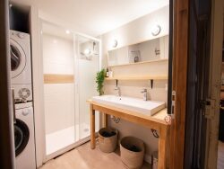 Le séjour de 25 m², lumineux grâce aux ouvertures en PVC/aluminium à double vitrage. La cuisine aménagée et équipée est un véritable atout. Les quatre chambres, réparties sur deux niveaux, offrent des espaces de vie intimistes et confortables.