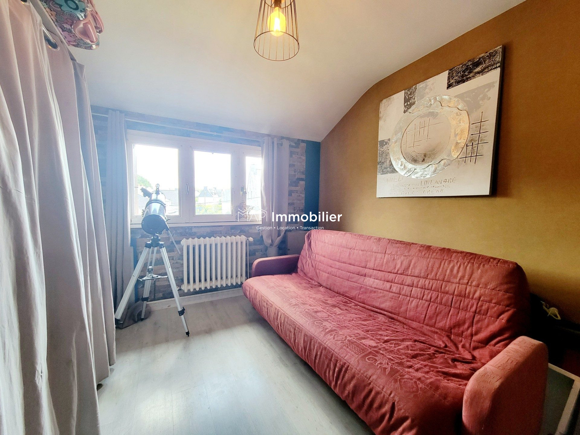 Maison lumineuse de 130 m2 et 6 chambres sur 1600 m2 de terrain, au calme à Lochrist. Beaux volumes et cadre verdoyant, proche des commodités et activités de plein air. Au Rez de chaussée : véranda, cuisine, séjour-salon de 30 m2 avec cheminée et balcon, 2 chambres, salle de bain, wc. À l'étage : 4 chambres, rangements, salle de bains, wc. Sous-sol complet de 75 m2 avec garage double, atelier et buanderie. Second grand garage indépendant. Allée goudronnée. Une demeure lumineuse, saine et habitable de suite, avec chauffage central mixte fioul/bois et double vitrage récent. Intérieur à rafraîchir selon vos envies. - Annonce rédigée et publiée par un Agent Mandataire -