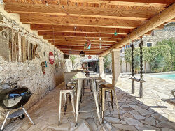 Maison de 188 m², dans une ancienne magnanerie divisée en 6 habitations, pleine de cachet qui se situe à 5 minutes à pied des commerces. Vous tomberez sous le charme de sa grande pièce à vivre voutée avec ses briques apparentes, et son béton ciré. Celle-ci est équipée d'une climatisation réversible et est dotée d'une magnifique cuisine aménagée avec accès direct sur la terrasse exposée ouest. La suite du RDC comporte une buanderie, ainsi qu'une suite parentale climatisée avec salle d'eau et dressing. A l'étage nous retrouvons 3 chambres, elles aussi climatisées, et une salle d'eau. Côté extérieur, dont l'accès se fait via la cuisine, une terrasse ainsi qu'un coin bar couvert, où vous pourrez profiter pleinement des beaux jours, en plus de la piscine équipée d'un dôme. Une dépendance aménagée permet d'accueillir amis et famille avec sa chambre et sa salle d'eau. Un garage motorisé, un hangar ouvert pour y stationner 2 véhicules, ainsi qu'un jardin en commun complètent ce bien UNIQUE.
