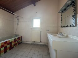 À l'étage, un dégagement avec placard dessert trois chambres mansardées avec rangements, une salle de bain ainsi qu'un WC séparé.