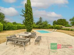 Le tout sur un terrain arboré à l'abri des regards, clos de murs, boulodrome. Grande terrasse avec piscine.