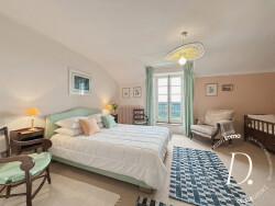 Au premier étage, quatre chambres avec leur point d'eau, deux WC indépendants, trois salles de bain (dont une réservée à une chambre), une bibliothèque, un salon / salle de jeux et un grand dressing-room.