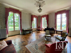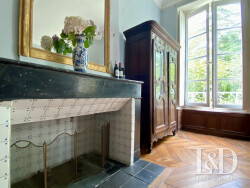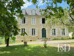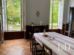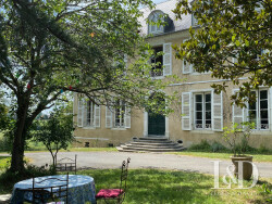 La maison de maître : Les amateurs de belles pierres et demeures historiques ne resteront pas insensibles aux éléments d'architecture intérieure admirablement préservés : cheminées en marbre, portes en boiseries ouvragées, sols en pierre de Bidache, meubles d'ébénisterie attenants, parquets points de Hongrie et versaillais, moulures, volets intérieurs... Un grand hall d'entrée central dessert les pièces de réception, ouvertes sur la campagne, d'un côté le salon et la bibliothèque ou chambre, de l'autre la salle à manger et la cuisine. Sur la façade opposée, une entrée de service et son vestibule avec WC mène à l'arrière cuisine, la cave, le cellier, la cuisine. A mi étage, l'on découvre un espace plus intimiste, comportant de nombreux rangements, une salle de bain et un WC, pouvant faire office de lingerie, dressing, salle de jeux, à votre guise. Le palier du premier étage mène à 2 grandes chambres dont une double et à un espace nuit de 3 chambres dont une avec salle d'eau, ainsi qu'à une salle de bain et un WC, indépendants. Pièces toutes lumineuses avec de belles hauteurs sous plafonds, de hautes fenêtres donnant sur les arbres et les collines. Le dernier étage, mansardé propose 1 chambre, 3 autres en enfilade, avec des vues splendides et un grenier.