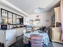 Maison de Maitre | 285 m2 | 5 chambres | dépendances | piscine hors-sol | 1140m2 de terrain EXCLUSIVITÉ Abithéa Charente-Maritime. Sur la commune de Saint-Genis-de-Saintonge, aux commerces accessibles à pied, se niche cette très jolie propriété sur 3 niveaux. Une des entrées donne sur une cour intimiste avec 2 magnifiques oliviers laissant entrevoir la façade à la pierre de taille. La grande entrée, un couloir à la lumière traversant donnant sur le jardin désert 3 belles pièces de vies, dont une offrant la possibilité de la 1ère chambre. Cheminées, parquet, poutres, grand volume, hauteur sous plafond, même si ce domaine nécessite un rafraichissement il sera difficile de ne pas succomber à ces possibilités et son charme. Le rez-de-chaussée bénéficie également d'une salle d'eau récente et d'un accès à la cave. Le 1er étage donnant sur une belle pièce de vie au parquet d'antan permet de multiple disposition. Sa cuisine avec sa verrière est dans l'air du temps et vous annonce des moments conviviaux en famille. L'étage bénéficie également d'un espace bureau, de deux belles chambres ainsi qu'une salle d'eau et WC. Le dernier étage offre aujourd'hui une chambre donnant sur un grenier, ainsi qu'un dortoir. A l'arrière vous y trouverez un grand portail motorisé. Plusieurs dépendances permettent le stationnement de véhicules. L'étage à la belle hauteur permettrait l'aménagement de logements. Le jardin dispose de plusieurs espaces, permettant à toute la famille de profiter pleinement de la verdure en ville. La piscine hors sol est couverte. Que vous ayez une grande famille, ou souhaitez faire l'acquisition d'une future maison d'hôtes, vous ne pourrait être que séduit. DPE : E Ce bien vous est proposé au prix de 493.500 EUR dont 5 % d'honoraires à la charge de l'acquéreur. Si vous souhaitez en savoir plus, contactez dès à présent votre conseillère Abithéa, Céline DEQUEEKER au 06.13.41.35.71 Confrères, nous sommes membres d'Interkab. RSAC de Saintes 524 607 744 Les risques auxquels ce bien est exposé sont disponibles sur le site géorisques www.georisques.gouv.Fr