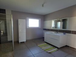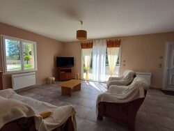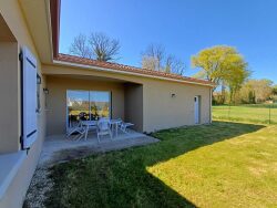 Cette spacieuse maison de plain pied de 2013, en parfait état, d'une surface habitable de 107m² comprend: Entrée dans pièce de vie lumineuse de 45 m² avec poêle à bois - cuisine ouverte 10 m² - cellier/buanderie - WC - salle d'eau m² - 3 chambres dont 2 avec placards 10, 11 et 13 m² - garage 40 m² attenant avec porte motorisée. Terrasse couverte orientée 'Est' 8 m² et une seconde terrasse couverte en partie 19 m² orientée 'Ouest' Cour sur l'avant de la maison et jardin sur l'arrière + portail motorisé Agréable jardin clos attenant, l'ensemble sur une surface totale de 1 196 m² offrant une vue dégagée sur la campagne. Menuiseries double vitrage PVC et aluminium - volets manuels et roulants - chauffage bois et électrique - assainissement par tout à l'égout - pas de travaux à prévoir - maison en parfait état bénéficiant d'une bonne isolation.