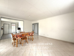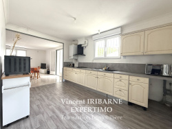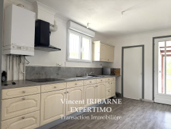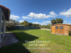 Vincent IRIBARNE vous propose cette maison facile à vivre de plain-pied située à deux pas des commerces et des commodités. Elle comprend un salon-séjour avec son coin cuisine équipée, deux chambres avec placard, une salle d'eau avec douche à l'italienne et meuble vasque, un cellier-buanderie, une véranda ainsi qu'un WC séparé. À l'extérieur nous retrouvons un grand garage et un abris de jardin, le tout sur un terrain clos et arboré. Les plus : assainissement tout à l'égout, fibre optique, portail motorisé et place de parking.