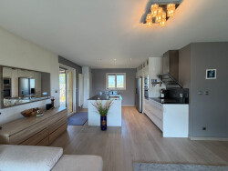 Une pièce de vie lumineuse et facilement aménageable avec la vue lac. Une cuisine ouverte, moderne et entièrement équipée. Un poêle à bois, apportant cachet et chaleur au séjour pour vos soirées d'hiver.