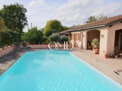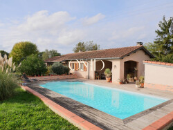 Agréable maison de plain pied de 103 m² habitables, avec terrasse, cuisine d'été et piscine.