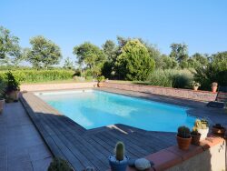 Agréable maison de plain pied de 103 m² habitables, avec terrasse, cuisine d'été et piscine.