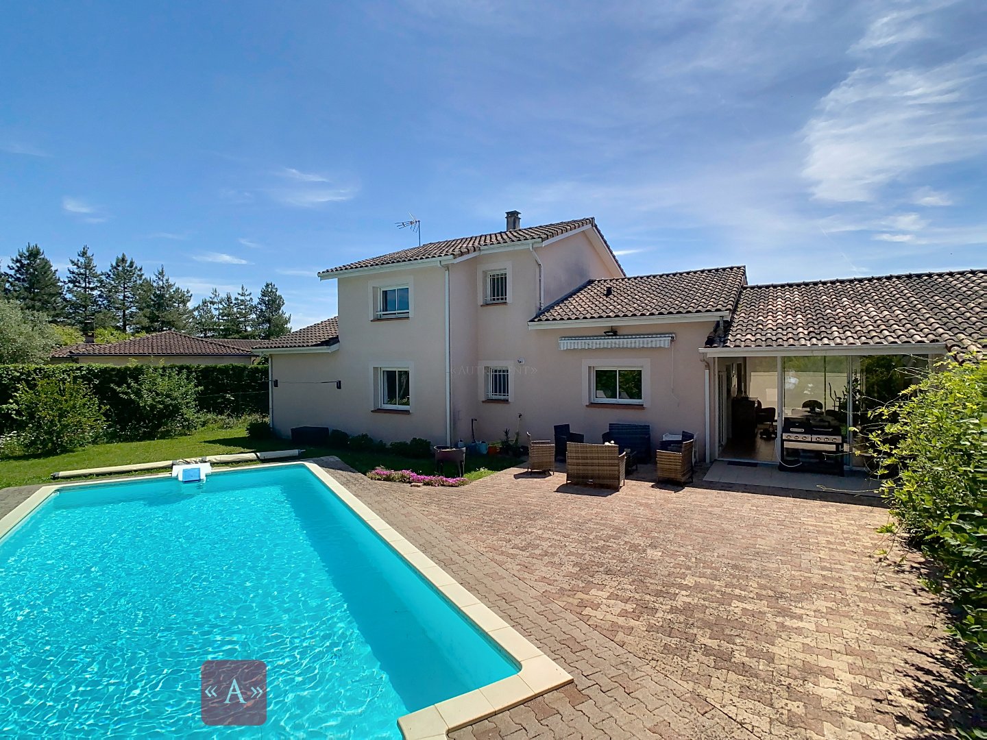 Caractéristiques principales : Surface habitable : 145 m² Grande pièce de vie avec cuisine aménagée équipée ouverte 4 chambres avec placards dont une suite parentale avec salle d'eau privative et dressing. Salle de bains toilettes indépendantes Buanderie Terrain clos et arboré de 730 m² Piscine chauffée et grande plage en bois Atouts supplémentaires : Quartier calme et résidentiel Proximité immédiate du centre-ville et des transports Double vitrage et volets roulant électrique Climatisation réversible Isolation toiture récente Allée en enrobé portail électrique Robot tondeuse Chargeur voiture Taxe foncière 2036