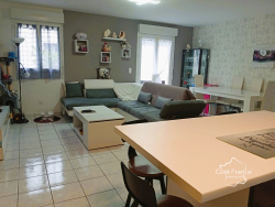 Maison de plain-pied 3 chambres Jardin clos Construite en 2006 Proche commodités Cette maison de plain-pied construite en 2006 d'une surface habitable de 82 m2 est implantée sur un terrain entièrement clos de 476 m2, équipé d'un portail électrique. Elle dispose de trois chambres d'environ 10,5 m2 chacune, avec placards intégrés, accessibles depuis le couloir, où se trouvent également la salle d'eau de 7,25 m2 avec douche à l'italienne et les WC séparés. Le séjour lumineux avec portes-fenêtres comprend un espace salle à manger, un coin salon et une cuisine américaine avec îlot (surface totale d'environ 35 m2). La maison dispose de deux garages situés de part et d'autre :