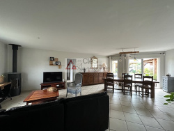 Située dans un environnement paisible et très prisé, cette maison de plain-pied parfaitement entretenue vous séduira par ses prestations de qualité et son agencement fonctionnel. Vous découvrirez une grande pièce de vie lumineuse, ouverte sur une cuisine récente, entièrement meublée et équipée, alliant modernité et convivialité. L'espace nuit se compose de 4 chambres, d'un bureau, ainsi qu'une grande buanderie offrant de nombreux rangements. À l'extérieur, vous profiterez d'un jardin paysager soigneusement entretenu, avec une piscine chauffée, parfaite pour prolonger les plaisirs de la baignade. Un grand garage, un carport, ainsi qu'un portail électrique complètent les prestations. Confort optimal toute l'année grâce à un poêle à bois chaleureux et une climatisation réversible. Une maison clé en main, alliant confort, tranquilité et qualité, à visiter sans tarder! A cinq minutes de l'autoroute, de la gare et de tous commerces et écoles.