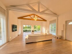 Située dans un cadre paisible et verdoyant venez découvrir cette maison de plain pied agrandie et rénovée en 2015 offrant une séjour triple de 70m² avec un poêle à bois et une cuisine ouverte aménagée et équipée, un coin nuit composé de 2 chambres, une salle de bains avec wc et une suite parentale avec un dressing et une salle d'eau avec wc. Une grand terrasse complète ce bien. La maison dispose également d'un sous-sol partiel accessible depuis l'exterieur. Chauffage individuel électrique. Terrain de 875m².