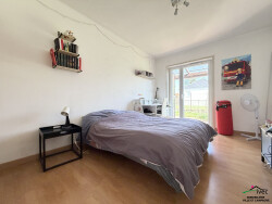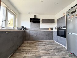 Elle dispose : Une entrée avec placards, un séjour/salle à manger de 38m2 ouvert sur une cuisine neuve entièrement équipée, une salle d'eau, 3 chambres avec placards (21m2, 13m2 et 11m2), un WC séparé, une salle de bain et un débarras. Une terrasse abritée, un jardin arboré et clôturé au calme. Un garage, un espace atelier/buanderie.