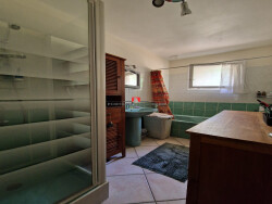 Elle est composée d'une entrée, cuisine, salon, salle à manger, un couloir dessert trois chambres avec placard, une salle d'eau et un WC.