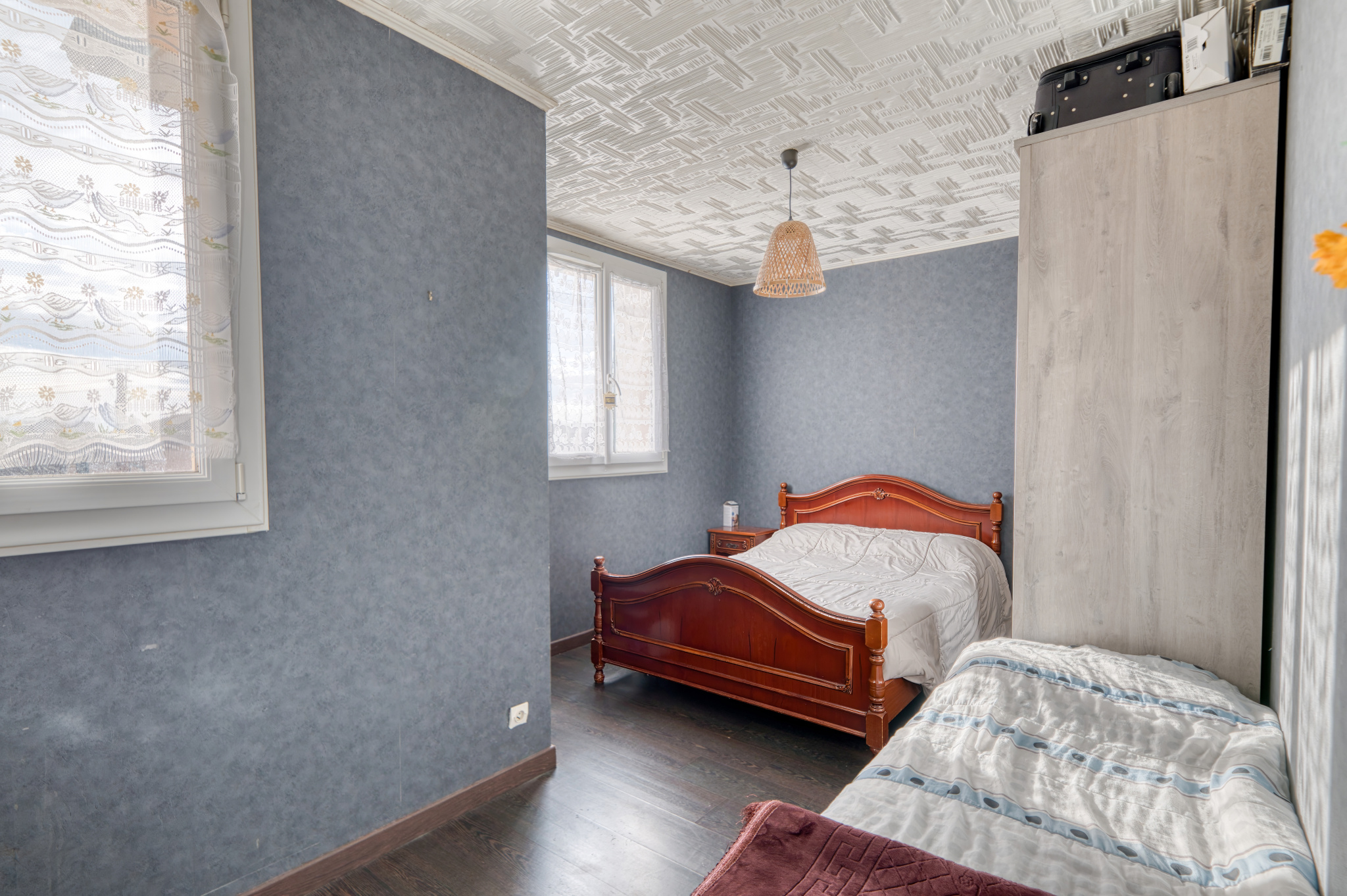 - Grand garage permettant de rentrer une voiture sans pour autant supprimer l'espace de stockage