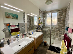 La maison propose quatre chambres, avec un coin nuit distinct de la partie jour, garantissant calme et intimité. La salle d'eau entièrement refaite offre des prestations modernes : double vasque et douche à l'italienne.