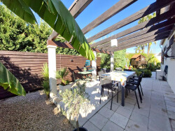 Elle se compose d'un lumineux salon-séjour climatisé, d'une cuisine équipée ouverte avec accès direct au jardin, de trois chambres avec placards intégrés, d'une salle de bain avec buanderie, ainsi qu'un WC indépendant.