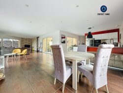 Dès l'entrée, vous découvrirez une spacieuse pièce de vie d'environ 65 m² baignée de lumière grâce à de larges ouvertures et agrémentée d'une cheminée avec insert, ainsi qu'une cuisine ouverte contemporaine aménagée et équipée. Cet espace chaleureux et lumineux est idéal pour des moments conviviaux, été comme hiver. A ceci s'ajoute une arrière-cuisine fonctionnelle. Au coeur de la maison, le patio intimiste constitue un véritable puits de lumière. À l'abri des regards, il offre un espace unique, calme et apaisant, idéal pour lire, se détendre ou recevoir. L'ambiance intérieure, à la fois élégante et moderne, se prolonge par la partie nuit composée de quatre chambres, toutes équipées de rangements. L'une des chambres dispose d'un dressing, une autre d'une salle d'eau privative avec WC. Un bureau, une seconde salle d'eau ainsi qu'un WC indépendant complètent l'ensemble.