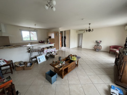 Située à 4 Kms de l'échangeur d'autoroute de La Réole et à 10 Kms de La Réole, l'Immobilier du Centre La Réole vous propose cette jolie maison de plain-pied avec garage et terrain autour. La maison édifiée en 2005 et bien entretenue se compose d'une entrée avec placard donnant sur une lumineuse pièce de vie de 46 M2 ouverte sur la cuisine meublée et équipée, d'une buanderie et d'un dégagement. L'espace nuit offre 3 chambres avec placard, une salle de bains-salle d'eau et un wc indépendant. Vous profiterez également d'une véranda de 20 M2 côté jardin, idéale pour les moments de détente, d'une petite véranda de 5 M2 à l'entrée et d'un grand terrain clos et arboré de 2200 M2. Un garage attenant de 25 M2 avec portail motorisé complète ce bien. Cette maison, bien isolée (DPE en B) dispose de menuiseries double vitrage, d'un chauffage par pompe à chaleur et électrique, d'un cumulus thermodynamique et d'un assainissement individuel. A visiter sans tarder. Les informations sur les risques auxquels ce bien est exposé sont disponibles sur le site Géorisques : https://www.georisques.gouv.fr REF : 3028LR PRIX : 212 000 Euros (Honoraires à la charge du vendeur) SARL IMMOBILIER DU CENTRE 2, Rue Armand Caduc 33190 LA REOLE Tel : 05.56.61.03.79