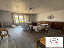 Maison de plain-pied très bien entretenue, située dans un environnement calme et agréable proche du centre ville à pieds.Elle se compose d'un séjour-salon lumineux, d'une cuisine aménagée, de deux chambres, d'une salle d'eau, de WC séparés, ainsi que d'un garage attenant.Une dépendance et un atelier complètent l'ensemble.Le tout sur un terrain clos de 518 m², en bon état général. Un bien fonctionnel et soigné, idéal pour une résidence principale ou secondaire.