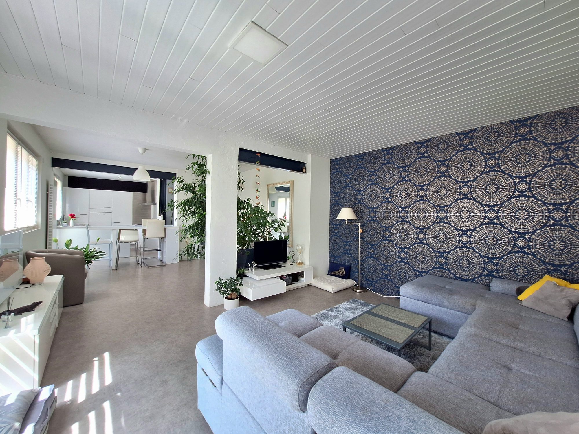 Un vaste hall d'entrée donne le ton : volumes généreux et atmosphère chaleureuse.