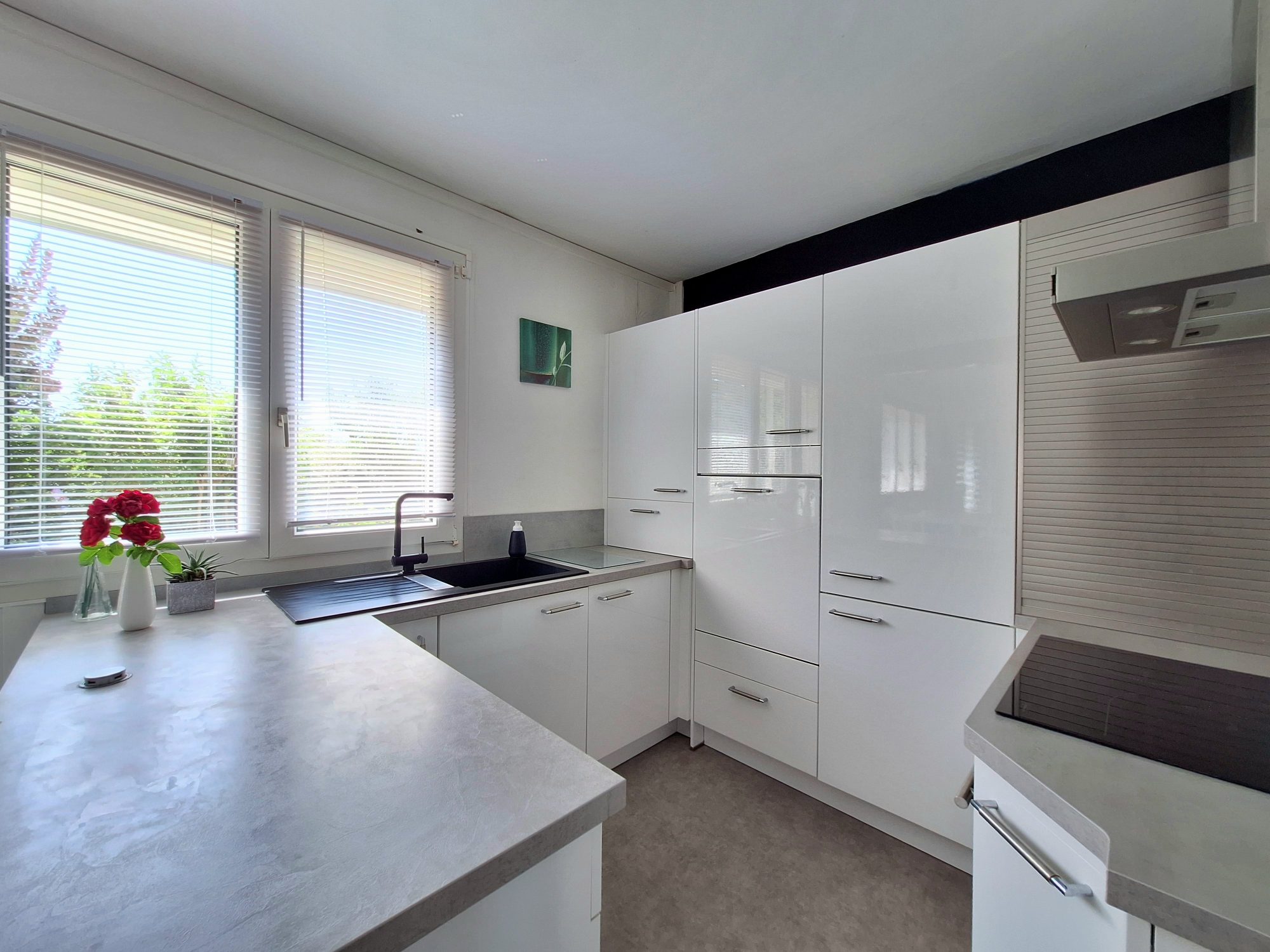 Le séjour lumineux partage un coin salon convivial, tandis que la cuisine séparée et équipée ravira les amateurs de convivialité.