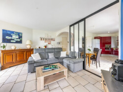 L'entrée, équipée de rangements, dessert un salon lumineux de 25,5 m² et une cuisine équipée semie-ouverte, récemment agrémentée d'une verrière neuve offrant une belle ouverture visuelle sur le séjour. Possibilité d'ouverture totale entre la cuisine et le salon pour créer une pièce de vie de 45 m². La partie nuit comprend trois belles chambres, ainsi qu'une salle d'eau spacieuse de 6 m² équipée d'une douche et d'une baignoire. Une lingerie fonctionnelle de 4,5 m² complète l'ensemble. En annexes : une cave de 3 m² et un garage de 46 m² offrant de multiples possibilités de rangement ou d'aménagement.