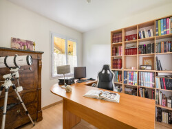 Menuiseries PVC double vitrage Portail aluminium motorisé et portes de garage motorisées Combles isolés en 2025: soufflage de laine de verre. R=7=335mm appliqué Cheminée en pierre Blanche de Provence L'entrée est pavée, la toiture entretenue Terrain joliment arboré de 1670m², au calme et sans vis-à-vis