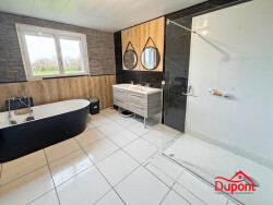 Une entrée vous ménera sur une pièce de vie entièrement ouverte et baignée de lumière naturelle, comprenant un vaste séjour avec une cuisine aménagée et équipée. Un espace convivial et moderne où vous n'avez plus qu'à poser vos valises et recevoir vos proches en toute sérénité. Un couloir vous conduira dans une espace nuit avec quatre chambres spacieuses pour accueillir vos enfants, votre famille ou vos amis. Une grande salle de bain équipée d'une baignoire, d'une douche, et d'une double vasque (finitions modernes et fonctionnelles) , ainsi qu'un wc compléteront cet espace à l'écart du séjour. Le petit plus, un aménagement des combles déja réalisé vous permettra de bénéficier d'une pièce supplémentaire de 32 m² Carrez, parfaite comme 5e chambre, salle de jeux, ou bureau, un point d'eau avec évacuation y est déjà installé avec la présence d'une baignoire. Seul l'escalier devra faire l'objet d'une modification pour faciliter laccès.