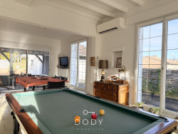 Situation calme pour cette agréable maison de plus de 200 m2 habitables disposant de très beaux volumes. Elle se compose d'une vaste entrée, un lumineux salon séjour de plus de 45 m2 avec cheminée, un cellier, un wc, une cuisine aménagée et équipée donnant sur une terrasse couverte et sa piscine. L'espace nuit dispose d'une suite parentale d'environ 60 m2 (chambre, salle de bain avec une douche et dressing), deux chambres, 1 wc, une buanderie. Un garage et un atelier. Jardin clos et arboré d'env 2200 m2. Les informations sur les risques auxquels ce bien est exposé sont disponibles sur le site Géorisques : www.georisques.gouv.fr.