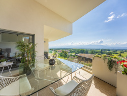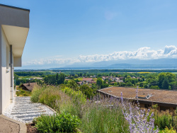 EXCLUSIVITE. Maison individuelle disposant d'une vue panoramique sur le Lac Léman et les Alpes, de Genève à Lausanne, érigée sur un terrain de 787 m2. Elle a été construite avec des matériaux haut de gamme, et pensée comme un appartement de prestige. La maison est distribuée sur un niveau habitable, avec quelques marches permettant de séparer les espaces de vie et suivre la topologie du terrain. Elle répond aux dernières normes environnementales, et est noté B au diagnostic énergétique (A pour les émissions de gaz à effet de serre). Elle comprend un garage et des places de stationnement en surface. Son organisation actuelle inclut deux chambres avec chacune sa salle de bains. Une demande d'autorisation d'urbanisme est en cours (déclaration préalable) pour la création d'une troisième chambre en suite, avec vue Alpes et sur un patio, permettant d'augmenter la surface habitable de 20 m2. Un carport serait créé pour le stationnement de deux véhicules, en plus des 2 places extérieures déjà existantes. Un bien singulier et exceptionnel, une construction et des prestations irréprochables et un environnement de toute beauté sont autant de qualiftatifs pour cette maison contemporaine. Please feel free to enquire in English for more information regarding this property. Contact : Séverine Herbeth Limon +33 (0)7 83 20 10 72 - LOVE MY PLACE .immo Cette annonce vous est proposée par HERBETH LIMON Séverine - SAS - NoRSAC: 514 212 547 , Enregistré à Greffe du tribunal de commerce de BOURG EN BRESSE - Annonce rédigée et publiée par un Agent Mandataire -