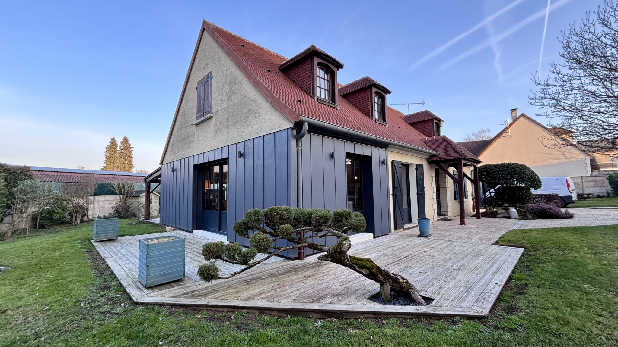 EXCLUSIVITE. dans une commune attenante à SOISSONS, pavillon de 2007 de standing, proche gare et hôpital. Il est composé d'une entrée, cuisine, séjour, 5 chambres dont une suite parentale en RDC, buanderie, 2 wc, salle de bains, salle de douche, espace bureau et salle de jeux. Terrasse et garage 2 voitures. Terrain clos de 600 m2. Adoucisseur, volets roulants électriques en aluminium, eau chaude par panneaux solaires...