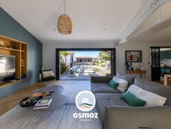 Située à quelques pas de la plage et des commerces, maison récente (2021) de type T7 avec des prestations contemporaines, d'une surface habitable de 200 m² sur une parcelle de 725 m².