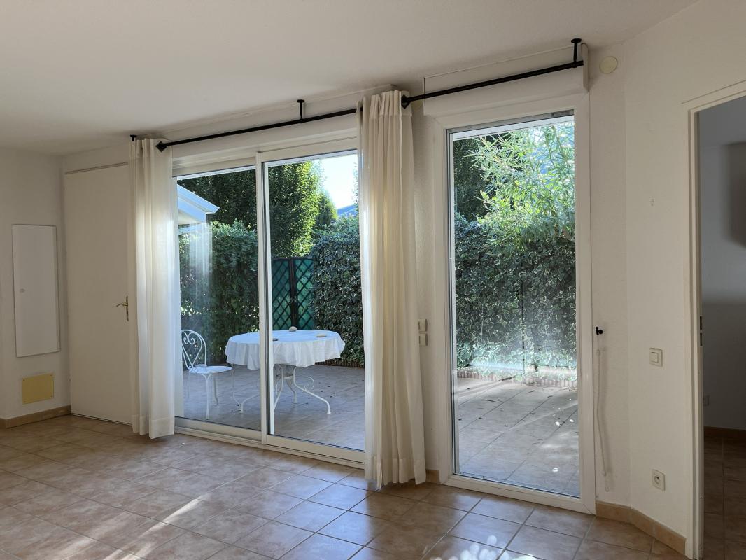 - Pièce de vie conviviale, donnant directement sur la terrasse et une piscine ensoleillée avec douche solaire