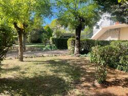 À l'extérieur, la maison offre un beau terrain arboré, entièrement clôturé et équipé d'un portail électrique. Un forage assure une autonomie en eau pour l'entretien du jardin. L'espace extérieur permet également de stationner facilement plusieurs véhicules.