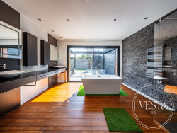 Une configuration fonctionnelle et évolutive : La suite parentale de plain-pied, d'environ 40 m², constitue un véritable espace privé avec accès direct vers l'extérieur et salle de bains pensée comme un espace bien-être.