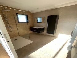 RDC : Un salon séjour, une cuisine ouverte nue (il n'y a pas d'éléments de cuisine donc vous aurez la possibilité de laisser libre court à votre imagination), une suite parentale avec salle d'eau privative douche meuble double vasque, WC séparé avec lave main, un garage et 2 places à l'extérieure.