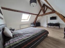 - à l'étage: palier desservant 3 belles chambres et un bureau mansardés (au sol: 21m², 22m², 12m² et 13m²) + suite parentale indépendante 24m² (chambre + salle de douche et WC) au dessus du coin billard accessible par 2ème escalier colimaçon.