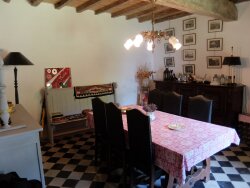 A la sortie d'un paisible village au nord de Condom, la Vieille Forge est une ravissante résidence de vacances, remplie de charme, entourée d'un joli terrain ouvert sur la campagne environnante. Le lieu est rare tant il a conservé son authenticité. Une visite s'impose pour en tomber amoureux ! En rez de chaussée, une petite entrée dessert une cuisine rustique avec une belle cheminée fonctionnelle d'un côté et une salle à mangerde l'autre. De la salle à manger, une communication pourrait être créée pour faire de la grande pièce à l'arrière un vaste séjour ouvrant sur une terrasse couverte existante orientée à l'ouest, idéale pour profiter de la fin d'une journée ensoleillée. A ce niveau aussi, il y a une grande salle d'eau/buanderie avec wc. Attenant, un garage de très grande taille, facilement accessible du jardin, avec mezzanine sur la quasi totalité de la surface pourrait faire partie d'un possible agrandissement. Au premier étage, depuis l'entrée, on trouve les 3 chambres spacieuses délicieusement désuètes ainsi qu'une très grande salle de bain (baignoire et douche) avec wc. Le jardin est plat et facile d'entretien. Des travaux sont à prévoir pour rendre la maison parfaitement confortable en toutes saisons et agrandir les espaces de vie si on le souhaite. Assainissement collectif. Excellente pression d'eau. Toiture bien entretenue. Simple vitrage. Aucun système de chauffage. Cheminée fonctionnelle dans la cuisine. Les premiers commerces sont à 4kms, Nérac et ses nombreuses activités à environ 15 minutes. Le village paisible à l'ombre du clocher de l'église du XIIème siècle bénéficie d'un ramassage scolaire. Maison coup de coeur à voir absolument ! POUR TOUTE INFORMATION COMPLEMENTAIRE ET/OU DEMANDE DE VISITE, MERCI DE PRENDRE CONTACT AVEC AGENCE HAMILTON A LECTOURE AU +33 (0) 5 62 29 59 57