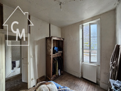 Une maison à usage d'habitation comprenant: au Rez-de-de chaussée: couloir d'entrée , desservant à droite: une salle à manger et une cuisine; et à gauche: une arrière cuisine dans laquelle se trouve la chaudière du chauffage central et waters closets , cellier attenant. Au premier étage: trois chambres et une pièce transformée en salle de bains: grenier au-dessus. Cour avec débarras.