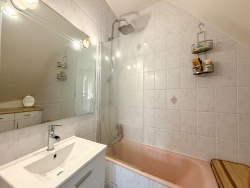 PREMIER ÉTAGE : Pièce de vie spacieuse et lumineuse donnant accès sur un balcon WC indépendant Salle de bain avec baignoire, meuble vasque et espace de rangements